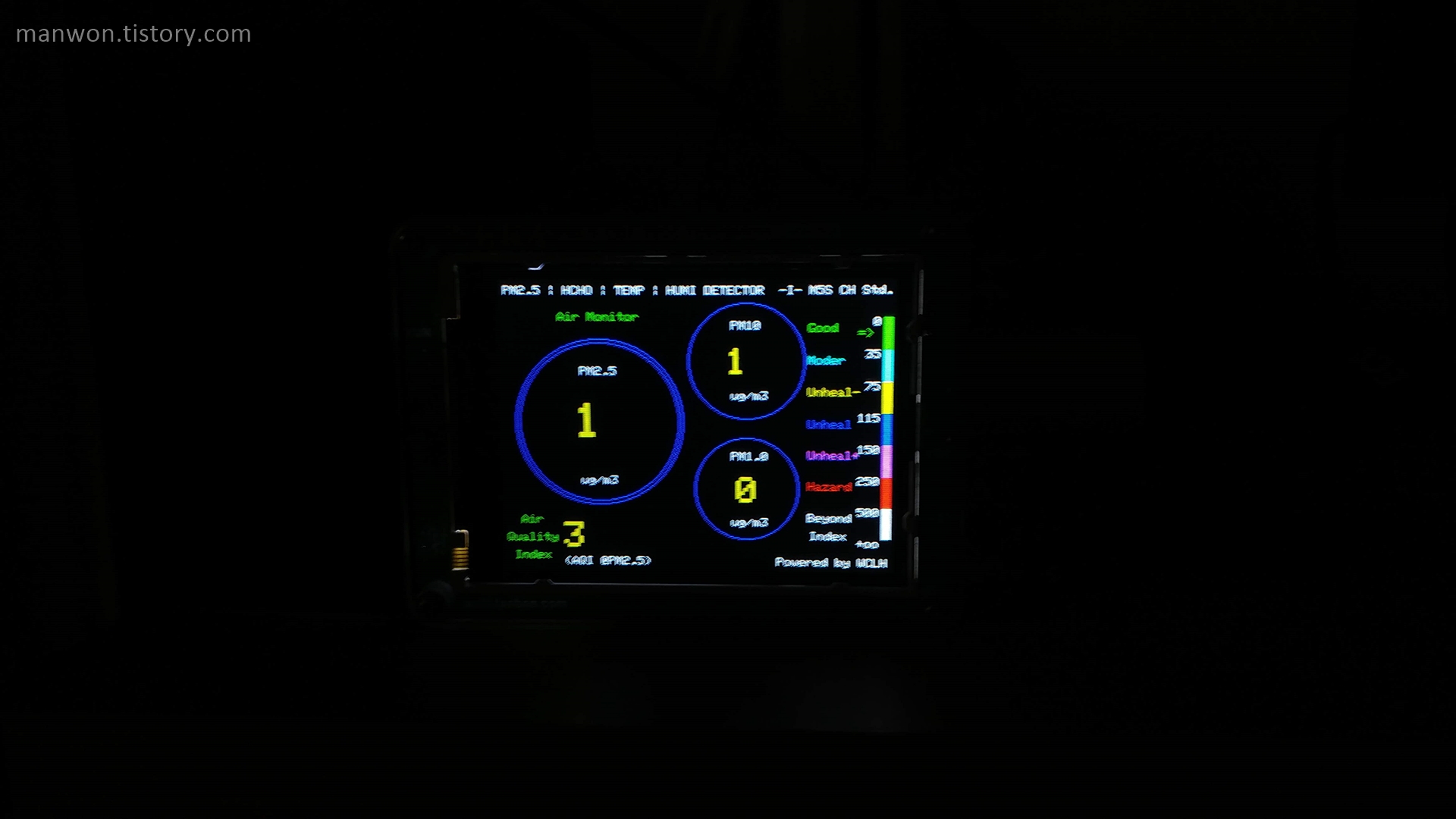 새 필터를 장착하고 몇 시간 지난 후, 거실의 초미세먼지 측정기 수치를 확인했다. 역시나 새 필터가 미세먼지 제거 효과가 뛰어나다. 보통 이 정도 상황에서 교체 전 공기청정기로는 PM2.5 수치가 10~20 정도 나왔었거든. 그런데 지금 무려 1이란 수치...