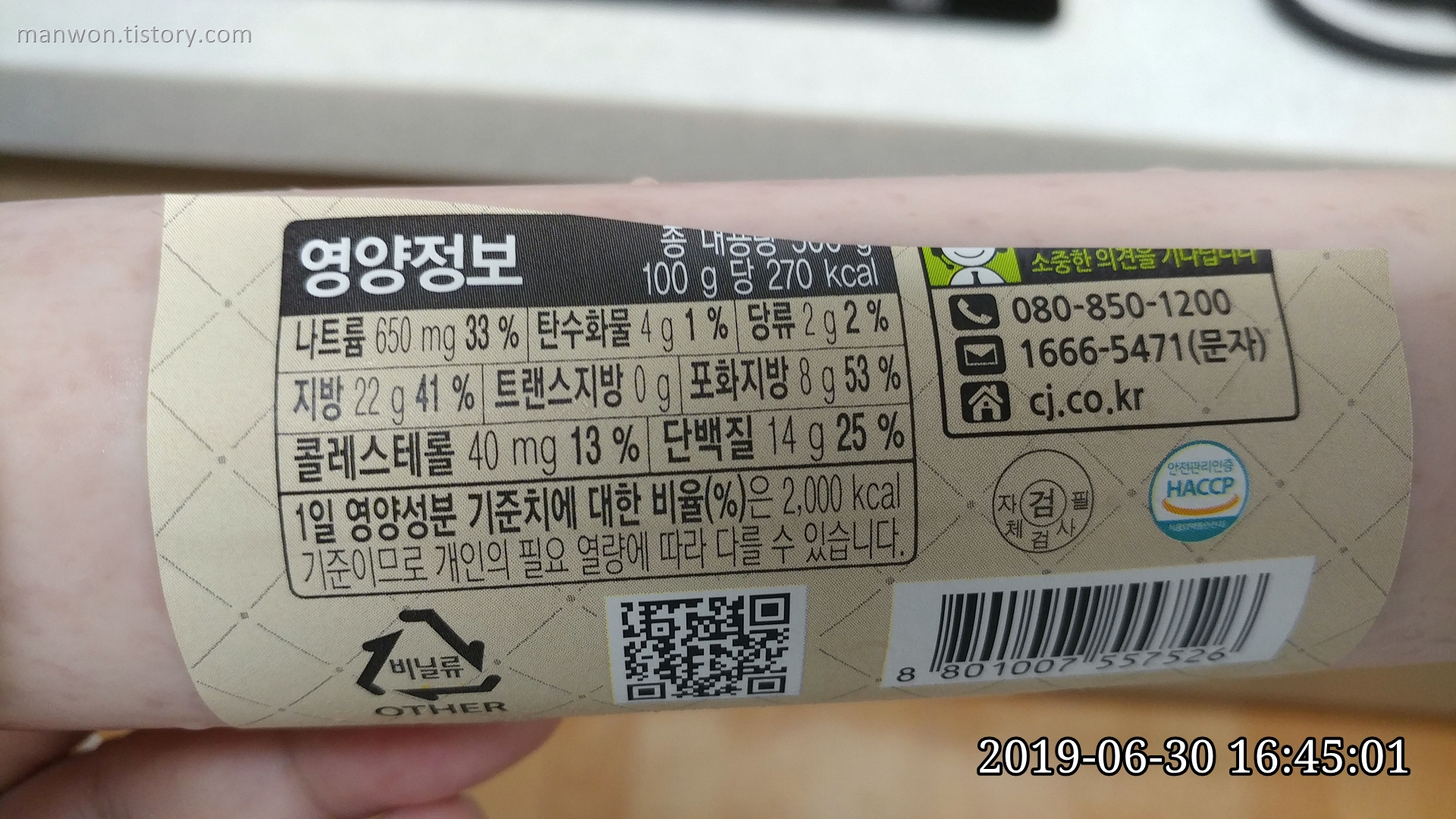 밀가루도 없고 아질산나트륨도 들어있지 않은 것 같다. 맛은 자극적이지 않고 뭐랄까 평평한 느낌이라고나 할까? 그래도 밀가루 끊었을 때, 일반 햄이나 소세지 대신 먹기에는 충분히 맛있는 편.