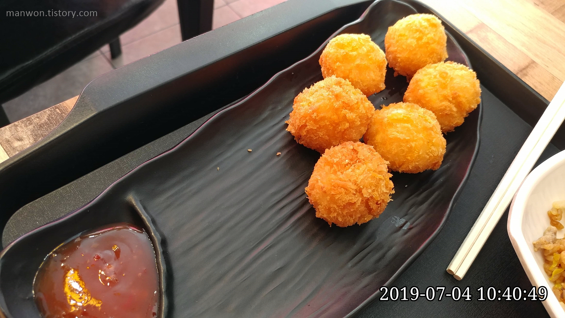 새우튀김도 시켰다. 아마 저 튀김옷에 밀가루가 있겠지. 일행도 있어서 아예 안 먹기는 좀 뭐해서 2개만 먹었다. 애초에 밀가루 끊기 기준이 저 정도 튀김옷에 들어간 밀가루 음식은 가급적 금지이고 상황상 어쩔 수 없다면 먹는 것을 허락하기로 했다. 이 정도는 선방한 거라 생각한다.