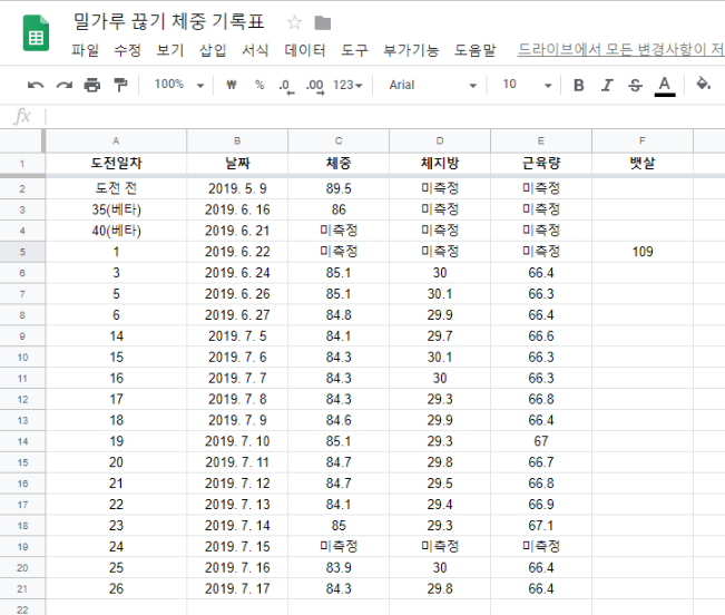 2019년 7월 17일 수요일. 밀가루 끊기 베타 테스트 기간 40일 + 본격 도전 26일 = 총 66일 차다.