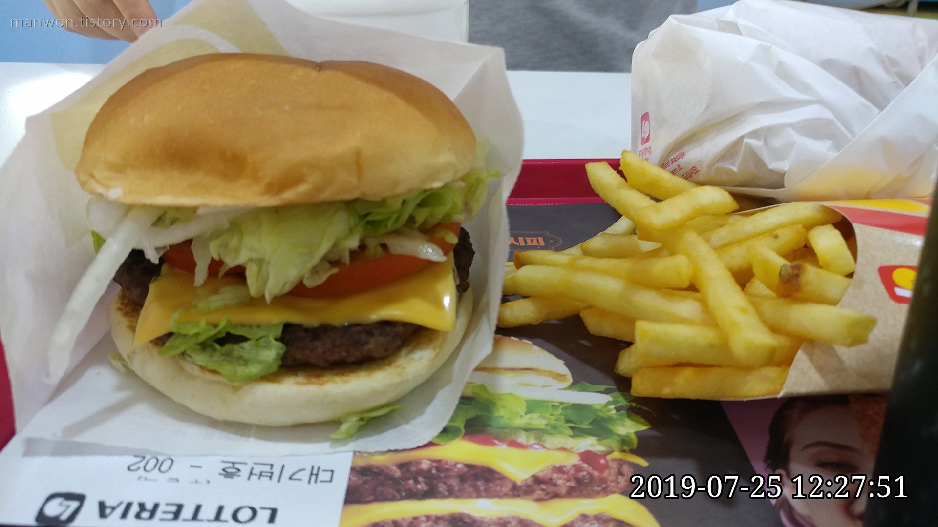 밀가루 섭취 3일 차. 햄버거가 빠지면 섭섭하지. 버거킹에 갔다가 주차장이 꽉 차서 근처 롯데리아를 갔다. 아재버거가 예전만 못 하게 나오네. 패티가 왜 이렇게 얇아졌지? 그러면 안되지.