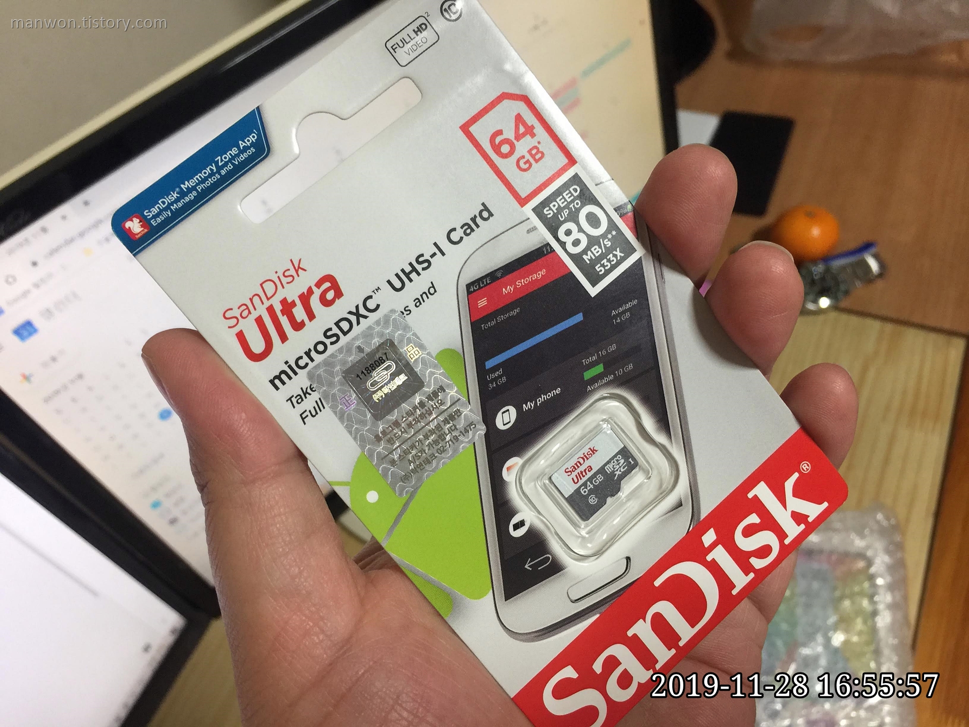 샌디스크 울트라 마이크로 SDXC 64기가. 이건 1만 1천원 주고 구매.