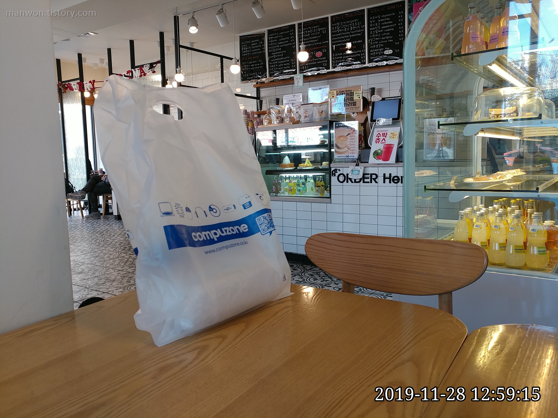 갤럭시 M20을 수령한 후 마이크로 SD를 사러 용산 전자상가 쪽으로 걷다가 날씨가 좀 춥고 그래서 잠시 커피숍에 들렀다.