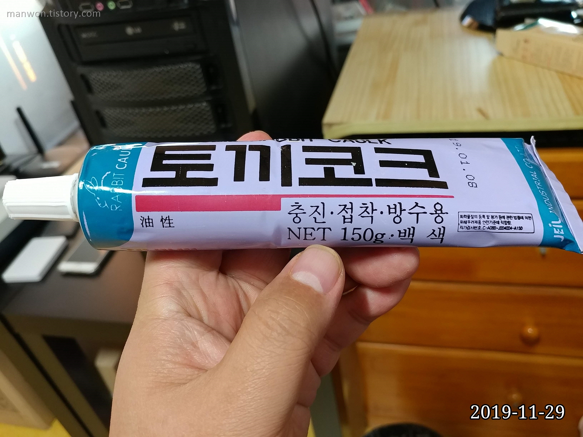 토끼코크는 화장실처럼 물기가 있는 곳에 무언가를 접착할 때 쓰이는 제품인 것 같다.