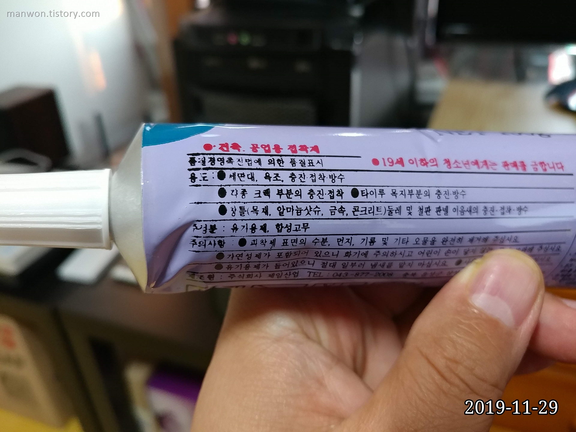 뚜껑을 열면 바로 쓸 수 있다. 특유의 본드 냄새가 확 올라온다.
