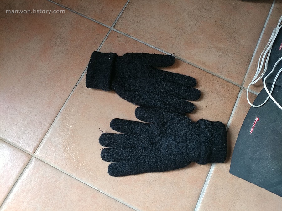 밖에 나갔다 올 때마다 에탄올로 장갑을 소독하고 위 사진처럼 앞 베란에 펼쳐 놓습니다.