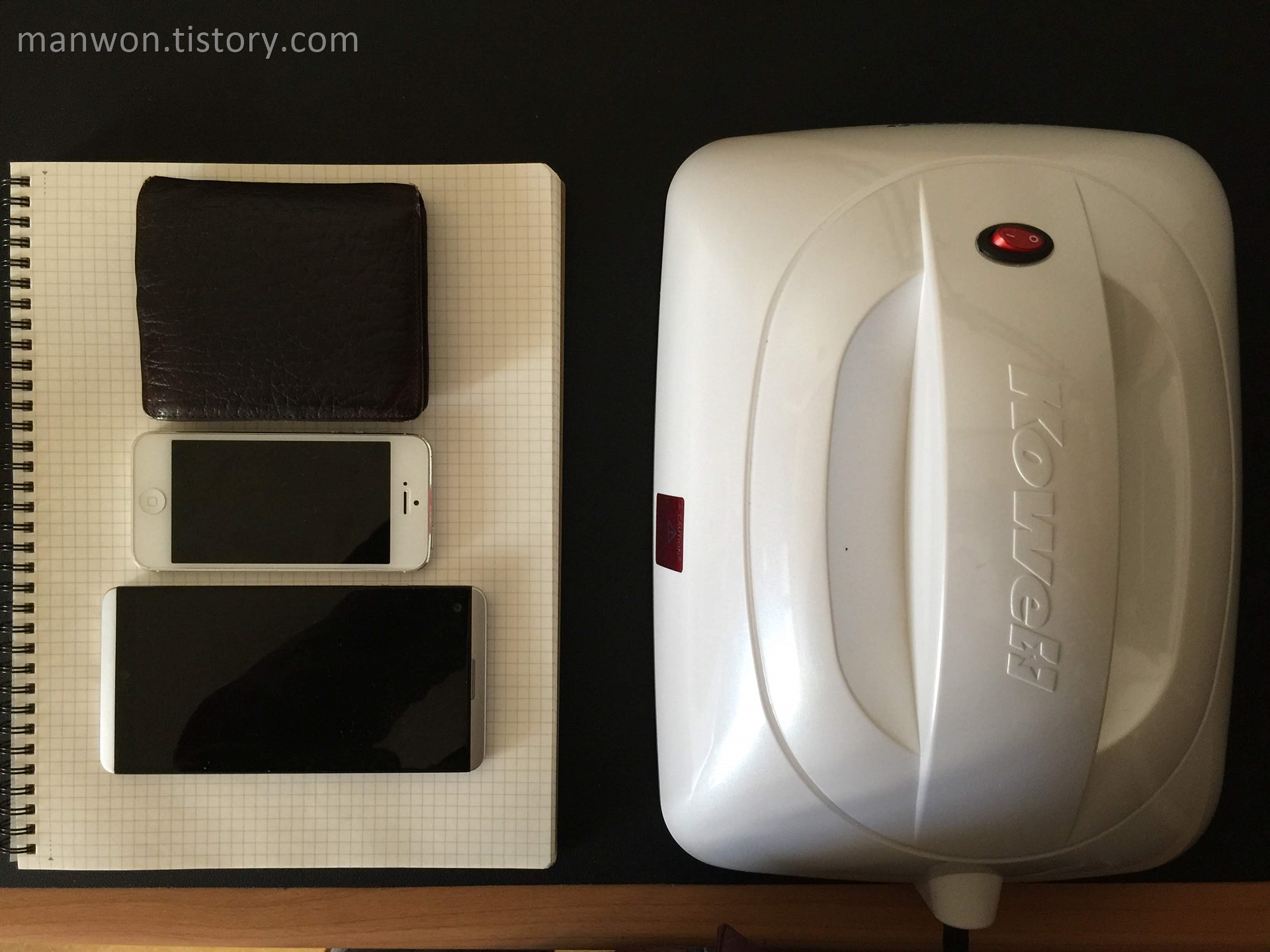 자 이번에는 지갑과 아이폰 5, V20 스마트입니다. 이 정도도 그냥 한 번에 덮어버립니다. 좋네요. 지갑이나 스마트폰 같은 경우 정말 변기보다 세균이 많다고 하죠. 늘 찜찜했는데 이 제품으로 살균을 하니 참 개운합니다.