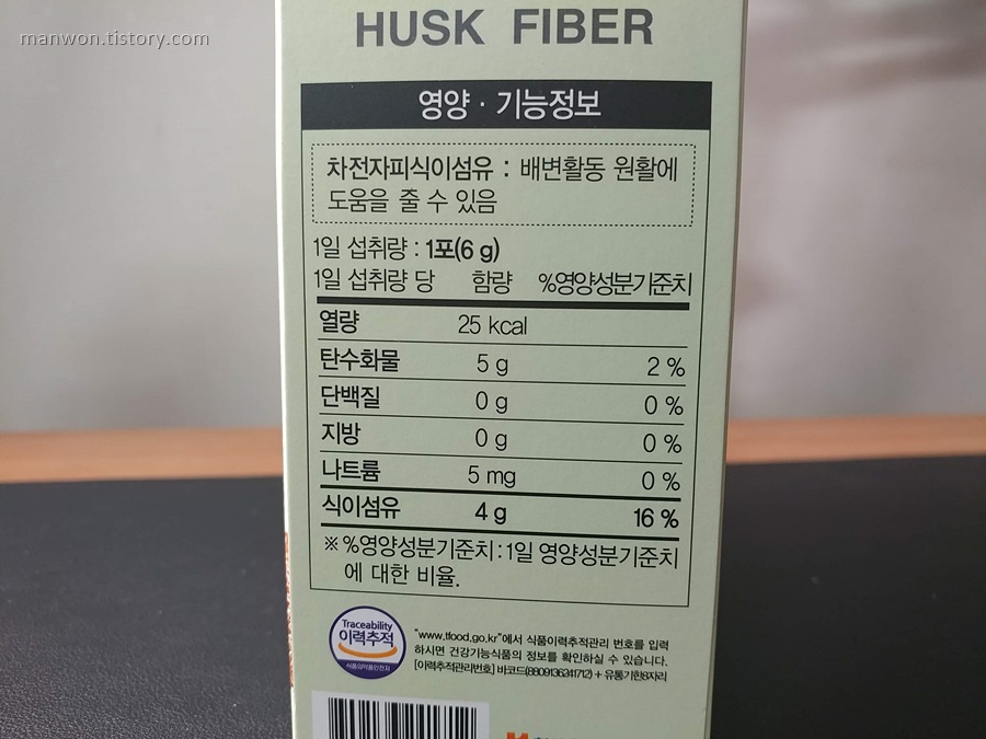 1일 1포. 식이섬유는 1포에 4그램 들어있네요.