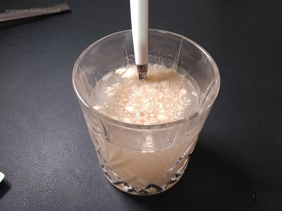처음에는 잘 섞이지 않는데 꾸준히 저으면 좀 괜찮아집니다. 차전자피가 수분을 흡수하기 때문일까요? 금새 꺼룩해지는 게 느껴집니다.