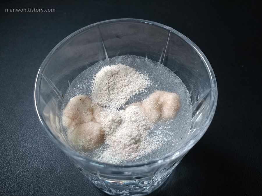 여기서 중요한 게 절대로 차전자피 분말을 입에 바로 넣으면 안된다는 겁니다. 입에 심하게 달라붙어서 크게 애를 먹을 수 있습니다. 꼭 물에 잘 타서 드셔야 합니다.