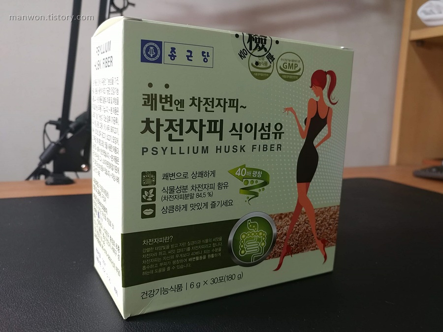 최근에 인터넷에서 "차전자피에 식이섬유가 많아서 유산균이랑 같이 복용하면 효과가 꽤 좋다"는 글을 본 적이 있었습니다. 인터넷으로 차전자피 관련 제품을 검색해 보니 가격도 꽤 저렴한 편이더군요. 그래서 종근당 제품으로 하나 구매했습니다.