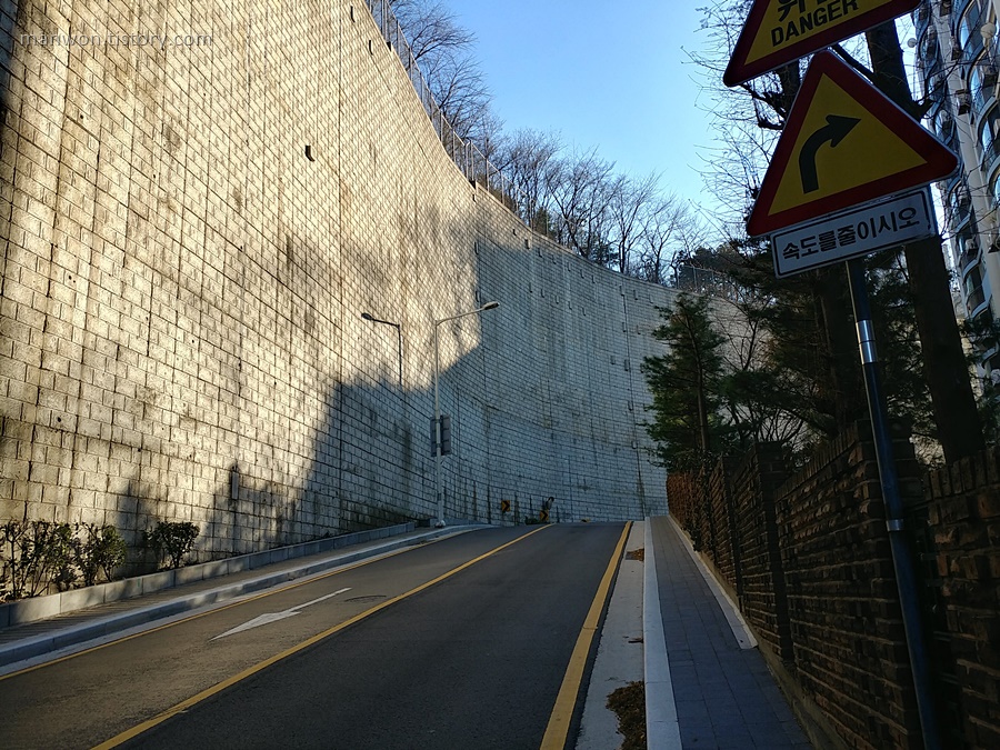 교육시간이 30분 이상 남아서 북부교육센터 건물 주변을 좀 걸었다. 걷다 보니 위 사진처럼 경사가 엄청 심한 길이 나왔는데, 사진에서 느껴지는 것보다 훨씬 경사가 심했고 또 길었다. '이 동네에 이렇게 경사가 심한 곳도 있구나!' 생각이 들더라. 이 동네는 버스 타고 스치듯 지나간 적만 간혹 있어서 대부분 평지인 줄 알았는데 이런 비탈길에 대단지 아파트가 자리 잡고 있는 건 또 처음 알게 되었네. 만약 자전거로 이런 경사를 오르며 배달해야 한다면 얼마나 힘들까 생각해 봤다.