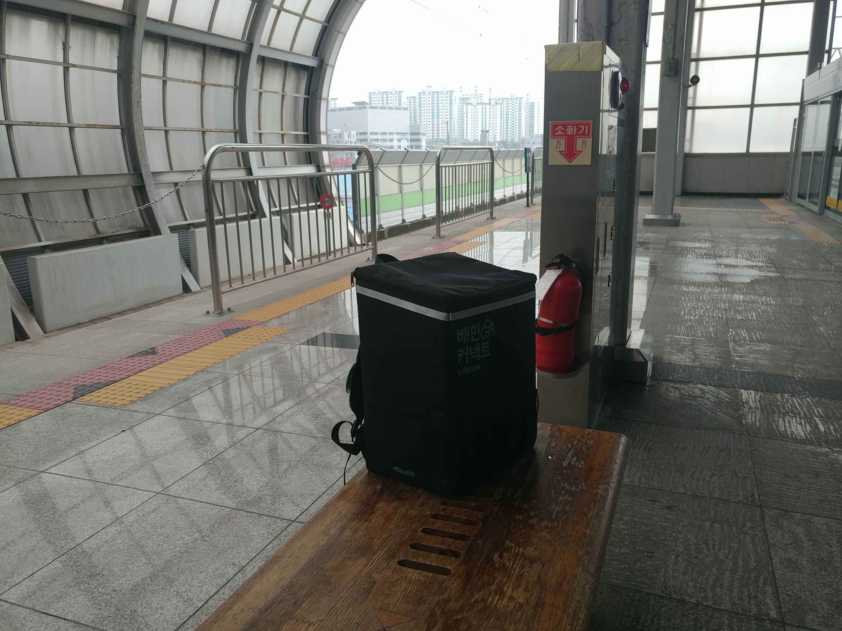 미세먼지 때문인지 하늘이 잔뜩 뿌연 날이다. 오후 2시쯤 전철을 탔고 3시 조금 넘어서 배달지역에 도착했다. 자전거로 배달하는 건 나름 재미가 있는데, 전철 타고 이동하는 게 너무 고역이다.