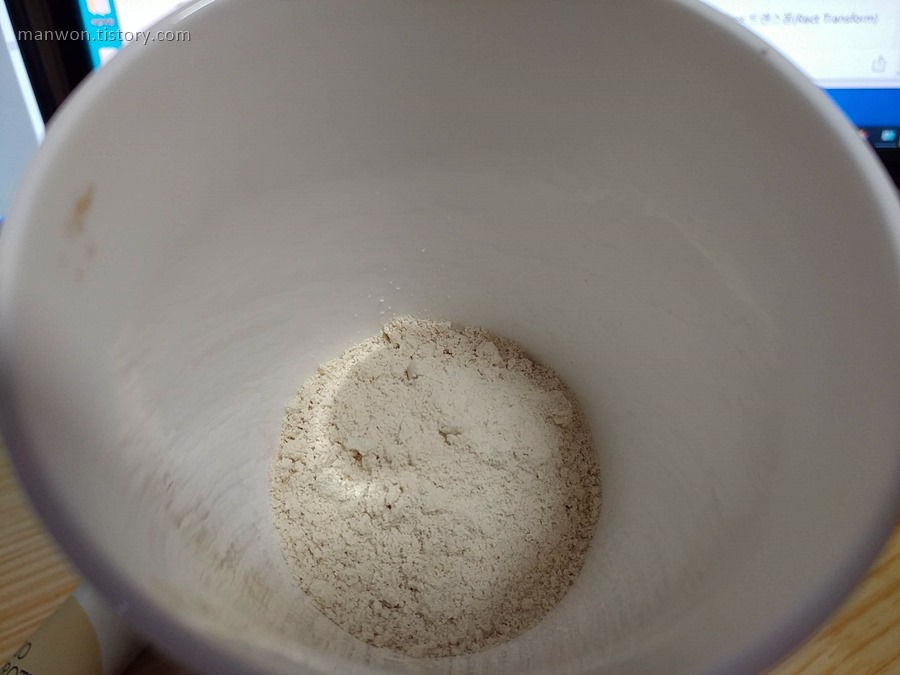 사진과 달리 우유에 생각보다 잘 섞인다. 내가 그전에 먹던 유청단백질 같은 경우는 전용 셰이크 용기에서 흔들어줘야 제대로 섞이고 그냥 컵에 담아 스푼으로 휘휘 저으면 잘 섞이지 않는 편이었거든.