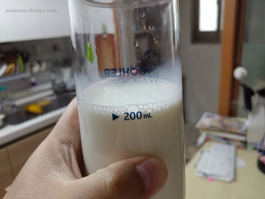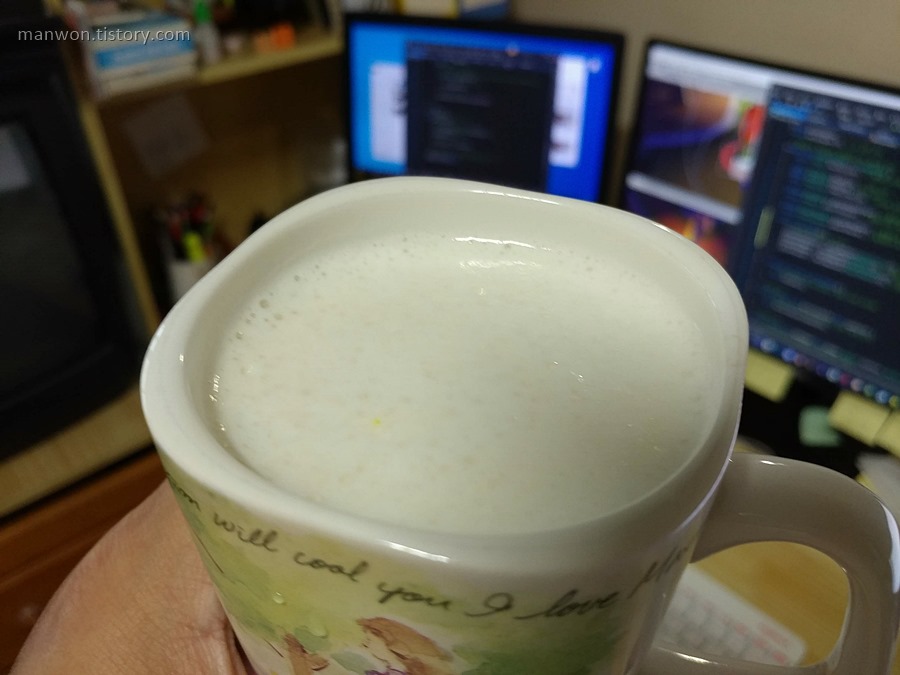 컵에 따라서 마셨다. 전용 용기로 흔들어서 먹으니 위 사진처럼 크리미한 거품이 생겨서 더 좋았다. 맛은 개인적으로 그레인이 더 좋은 것 같다. 밀키는 뭐랄까 그레인에서 느꼈던 곡물의 고소함이 없다고나 할까? 그레인에 비해서 맛이 좀 평평하다고나 할까?