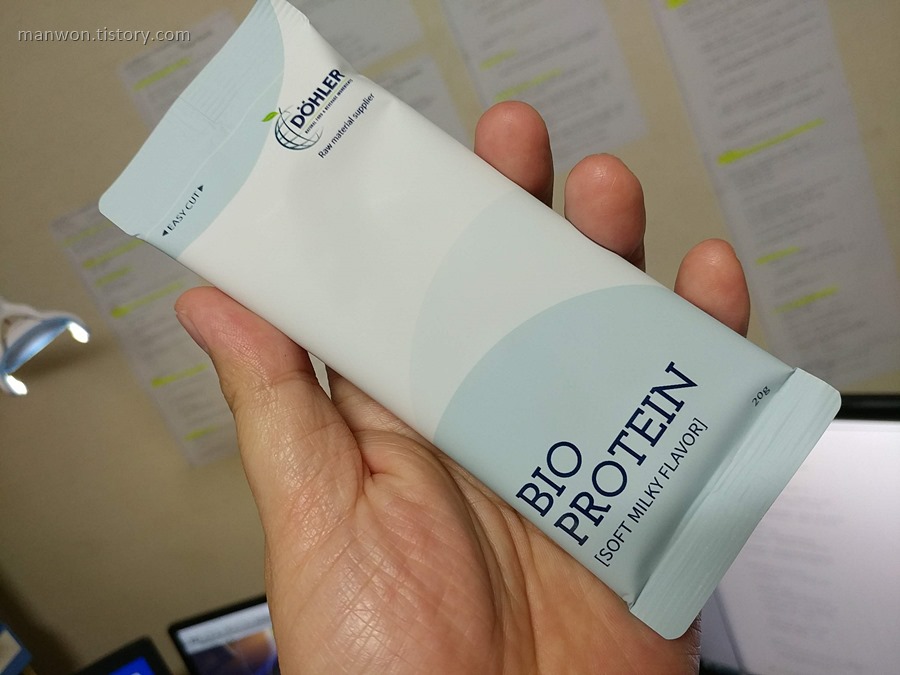 돌러 바이오 단백질 밀키 맛 1포를 투하.