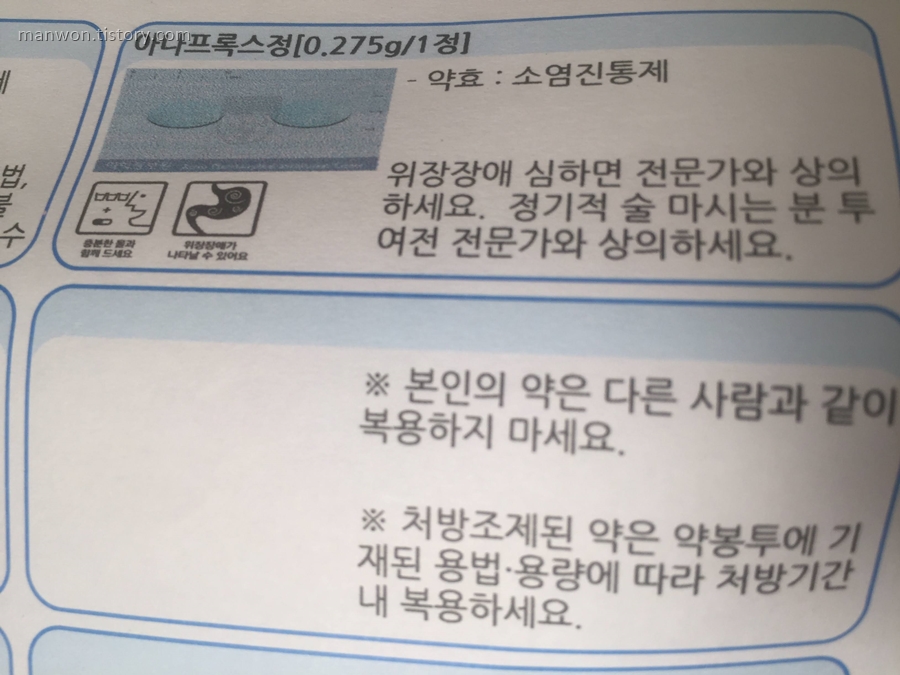 시간이 갈수록 통증이 심해지니 덜컥 겁이 났다. 처방받은 약에 진통제 성분이 있는지 다급히 확인해 봤다. 다행히 3알 중 1알에 진통제 성분이 있다는 걸 확인하고 조금 안심이 됐다. 저 약을 빨리 먹어야 하는데 발치하고 2시간은 지나야 식사를 할 수 있다. 오늘 처방 받은 약은 빈속에 먹으면 속을 상하게 하니 꼭 식사를 하고 약을 먹어야 한다.