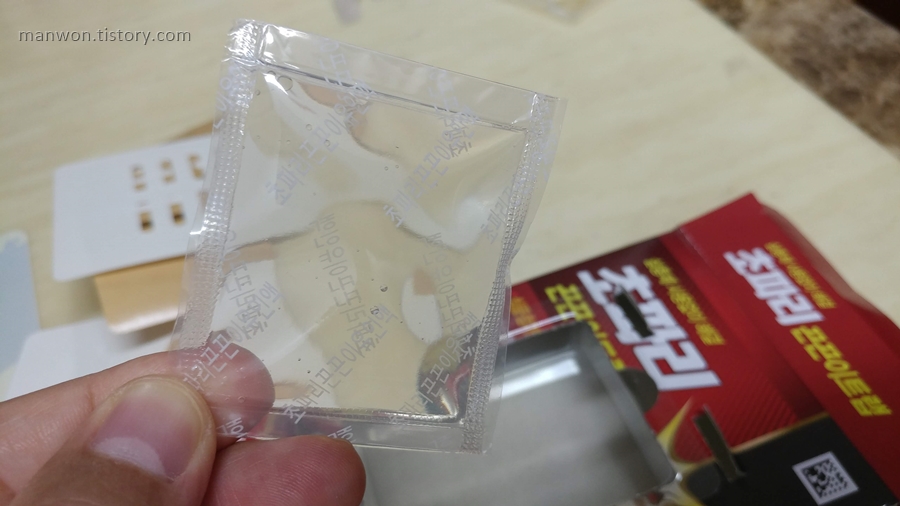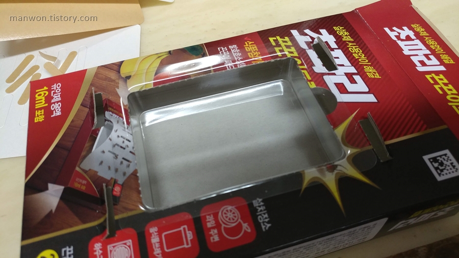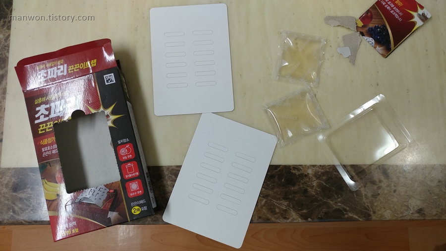 그 위에 끈끈이가 묻은 종이 패드를 위 사진처럼 걸치면 된다.