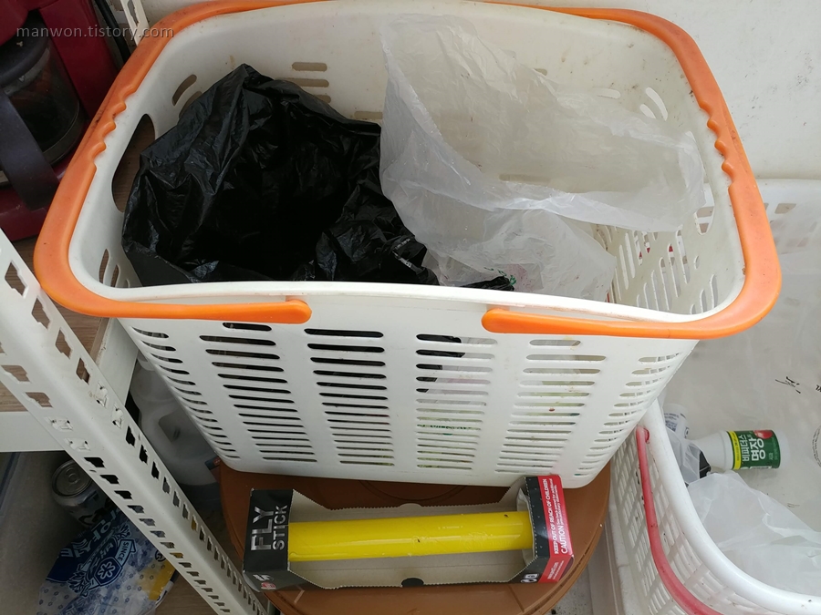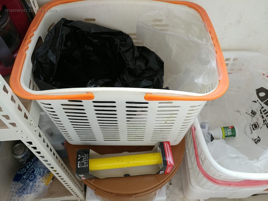 기둥의 위아래로 위 사진과 같은 플라스틱 용기가 있는데, 여기에 초파리가 좋아하는 과일이나 껍질, 액 등을 넣으면 더욱더 많이 잡힌다고 한다. 하지만 나는 그런 냄새나는 유인물은 쓰지 않기로. 밖에서 초파리가 더 들어오는 걸 원하지 않기 때문이다.