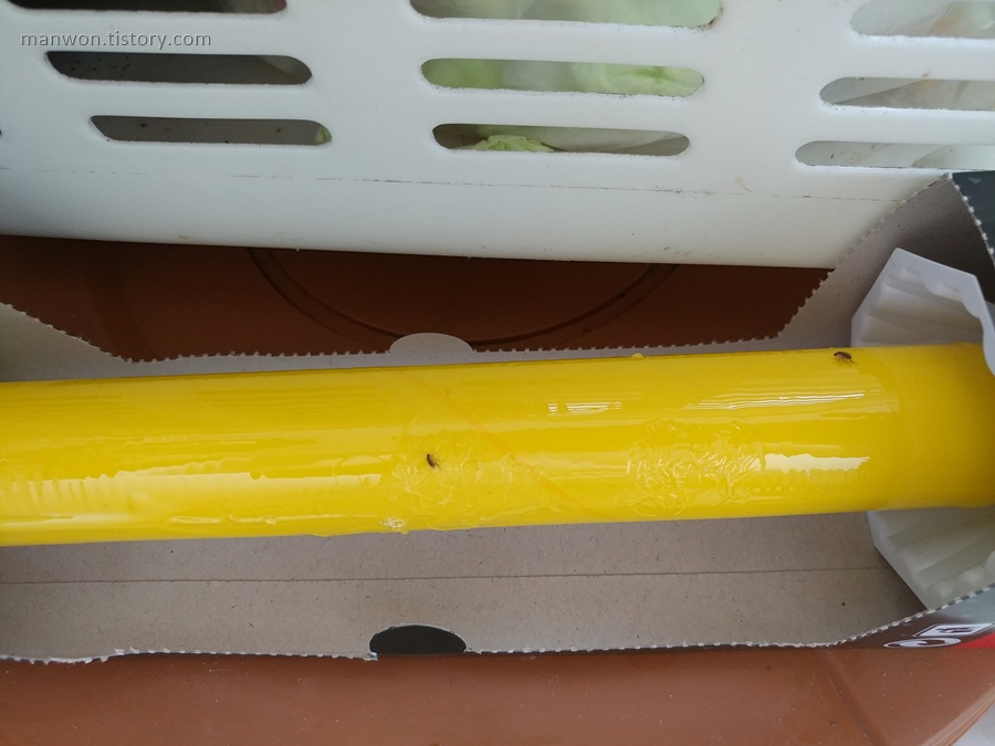 노란색 기둥을 보면 끈끈이가 충분히 발라져 있는 게 보인다.