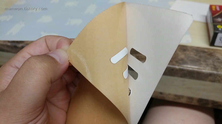 저 하얀색 면에 끈끈이가 발라져 있다.