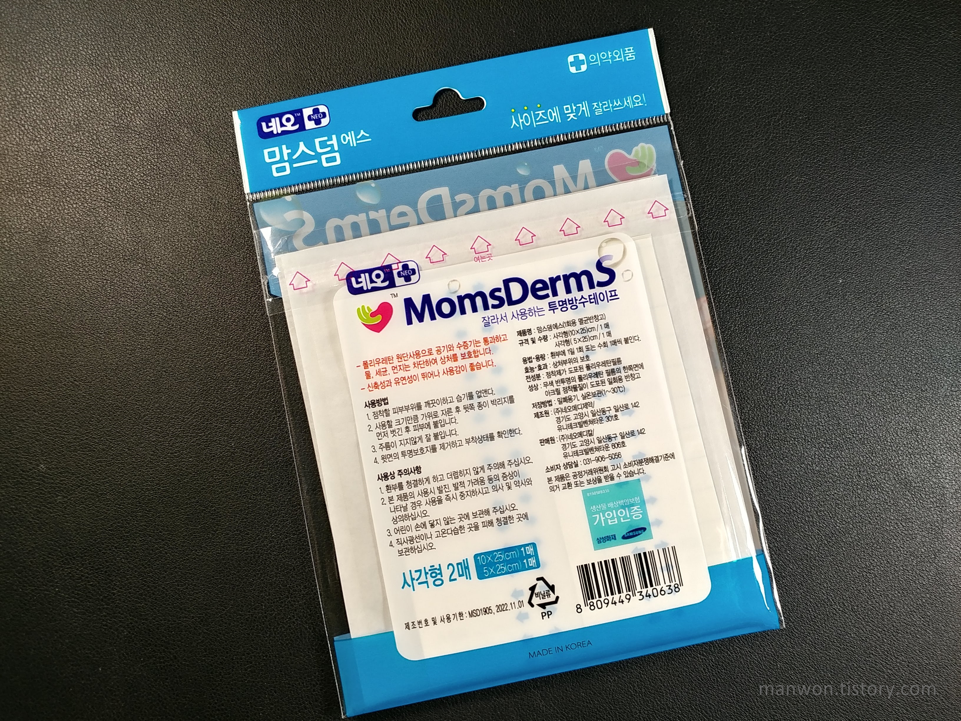 내가 사용한 제품은 '맘스덤에스 잘라쓰는 투명 방수밴드', 2,500원짜리다.