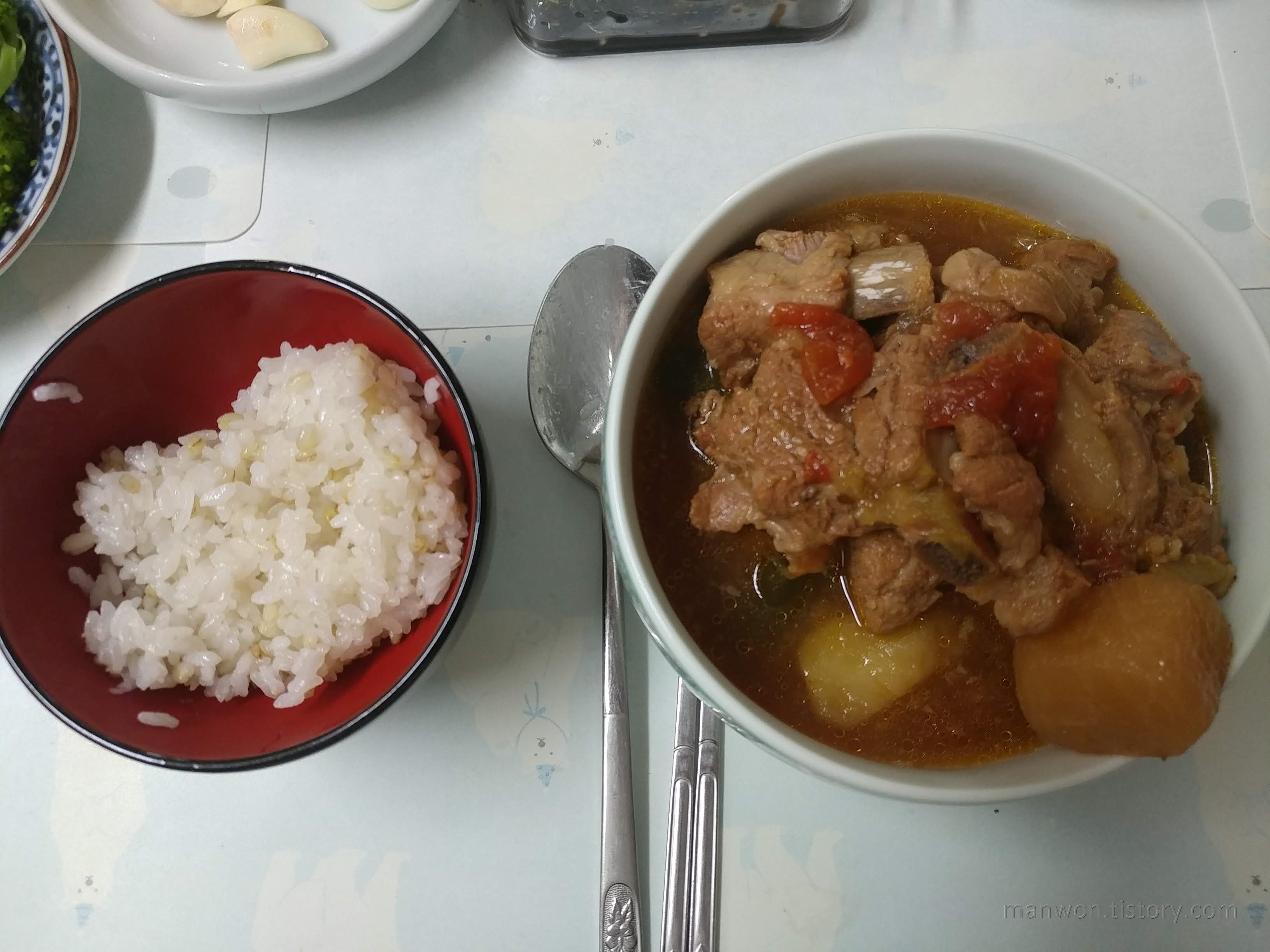 저녁으로 돼지갈비찜을 먹었다. 아무래도 단백질이다 보니 상처 회복에 도움이 되지 않을까?