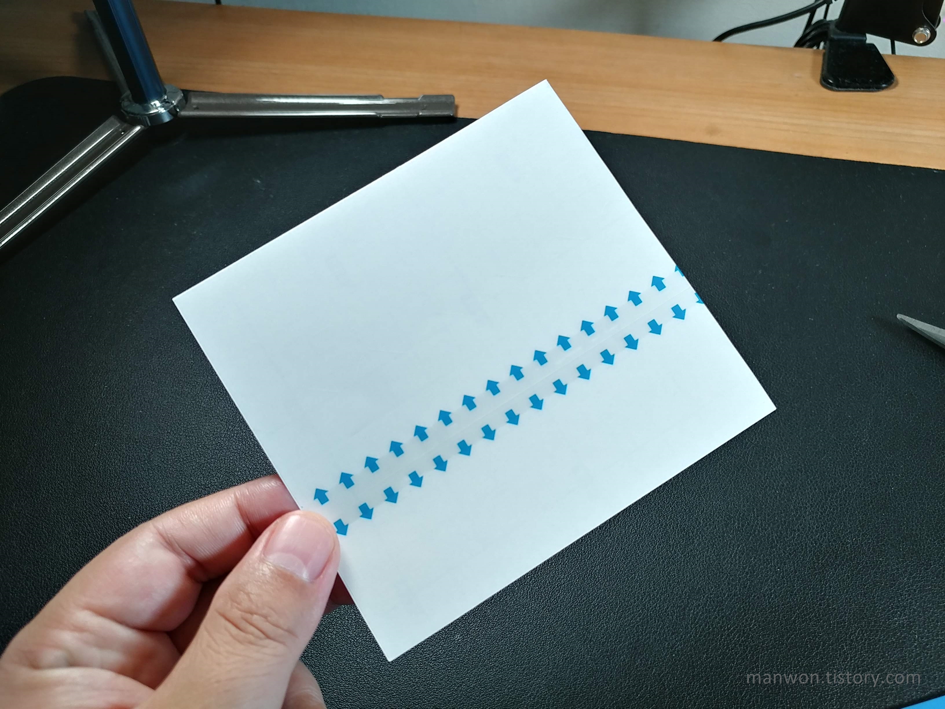 1. 처음 가위로 자를 때 화살표와 수평이 되게 자르고