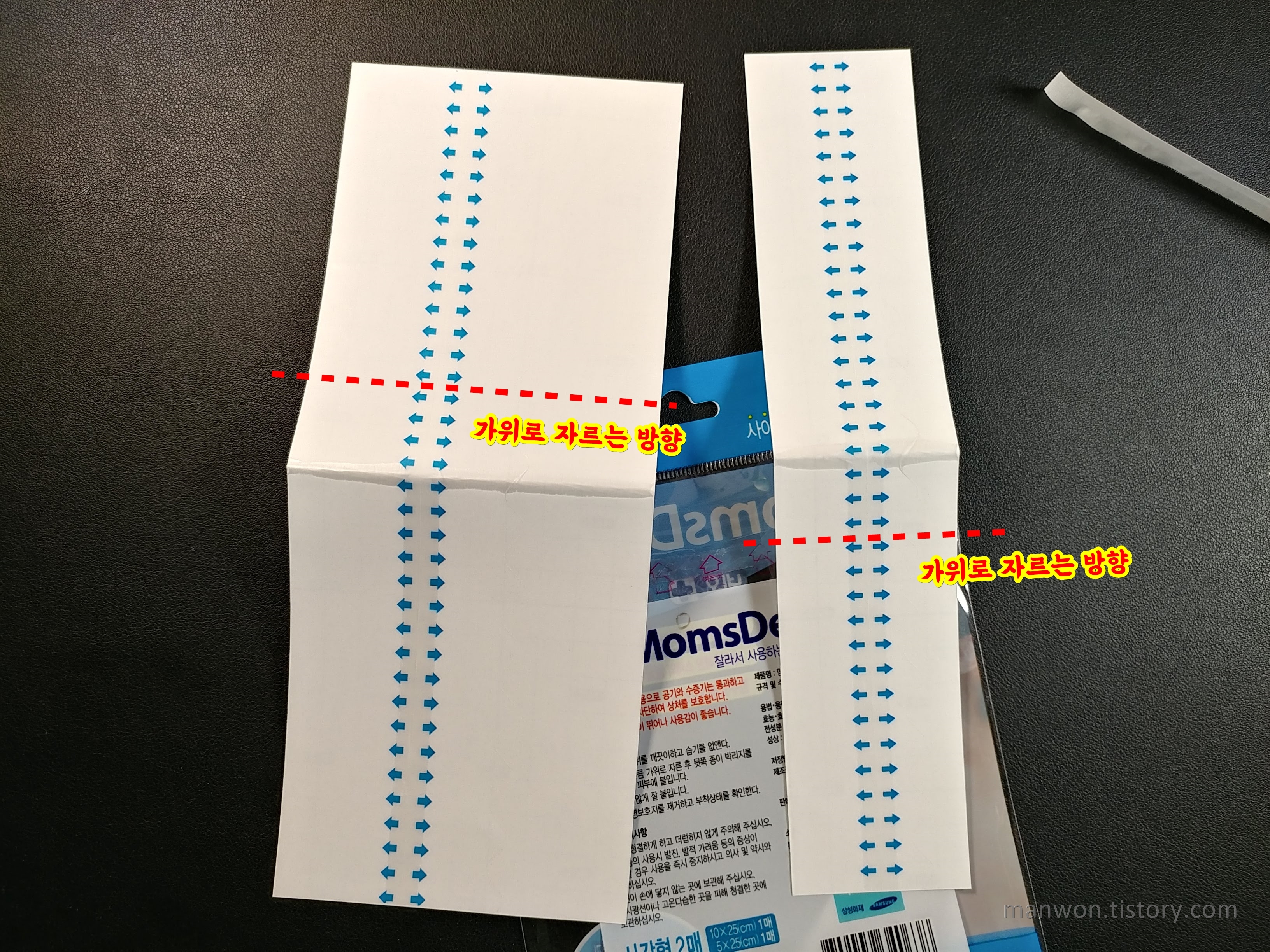 잘라 쓰는 본 제품의 경우 위 사진처럼 잘라야 한다.
