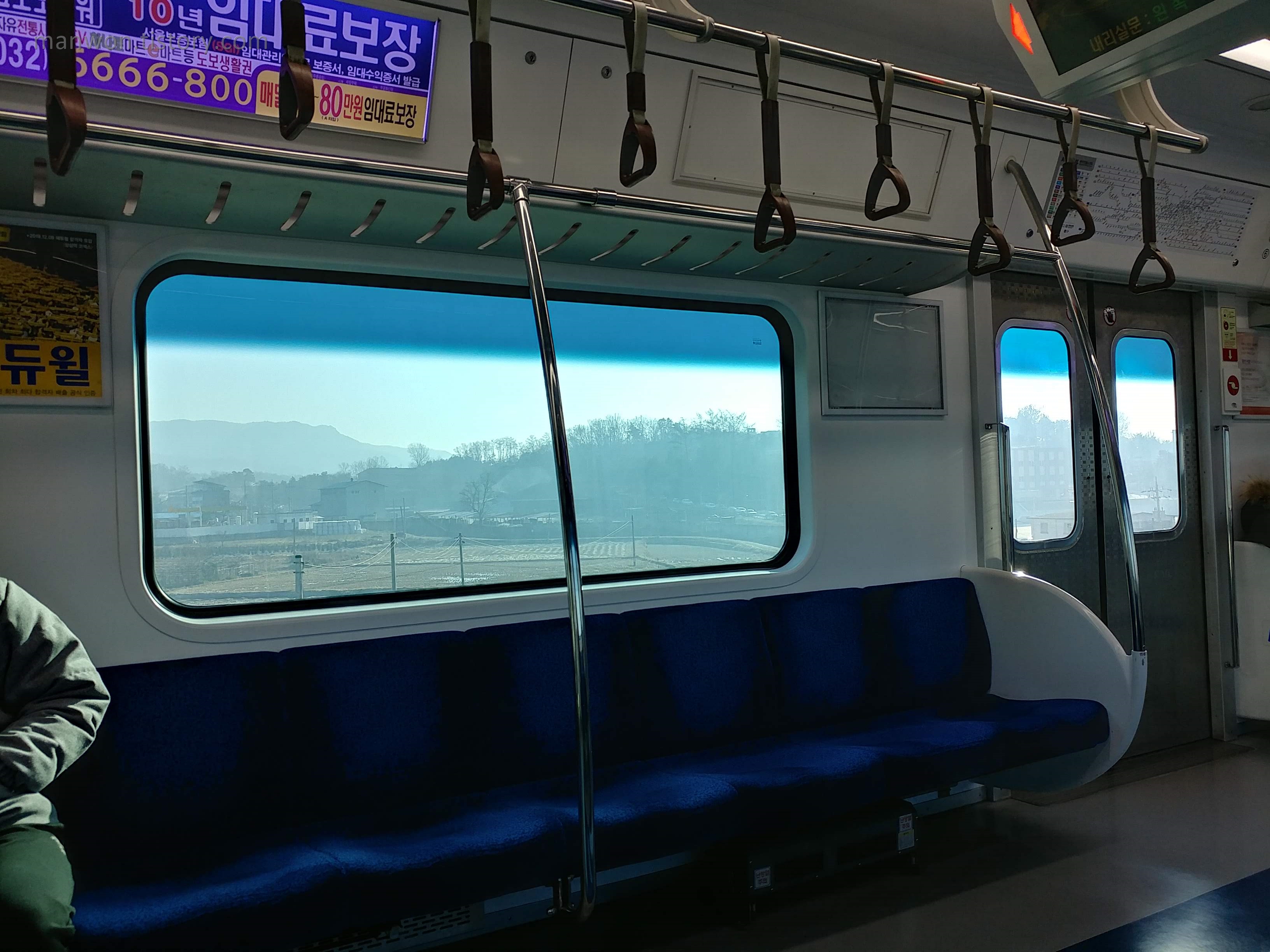전철 타고 일하러 나가면서 찍은 사진. 예전에 비해서 사람이 별로 없다.
