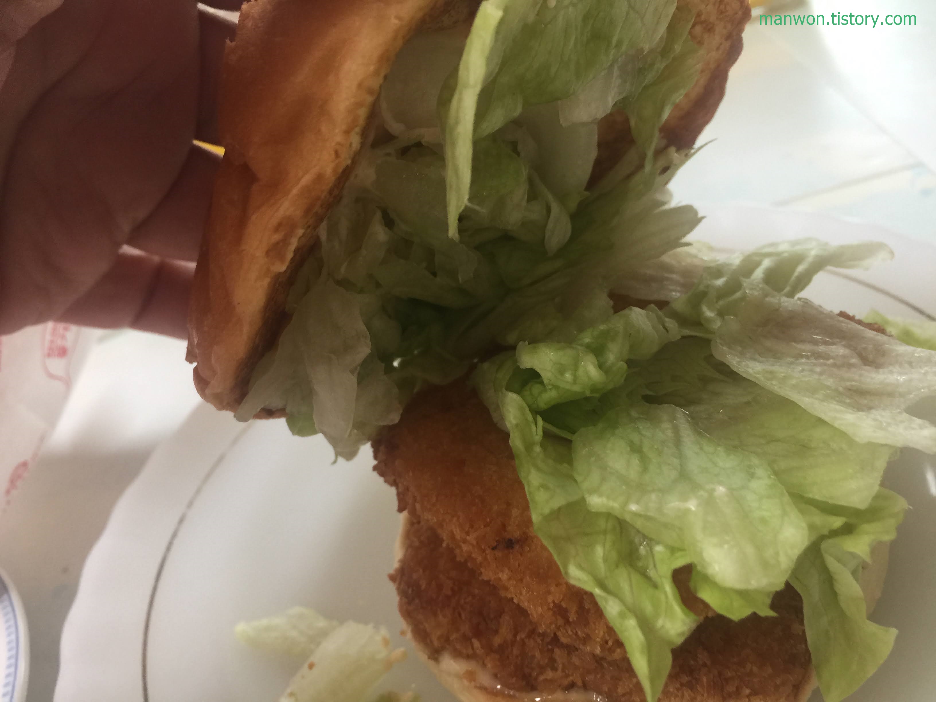 - 새우 패티에서 아주 아주 살짝 구린내 비슷한 게 났다. 먹는 데 지장은 없었으나 오리지널 새우버거에서는 내 경험상 그런 일이 없었다.