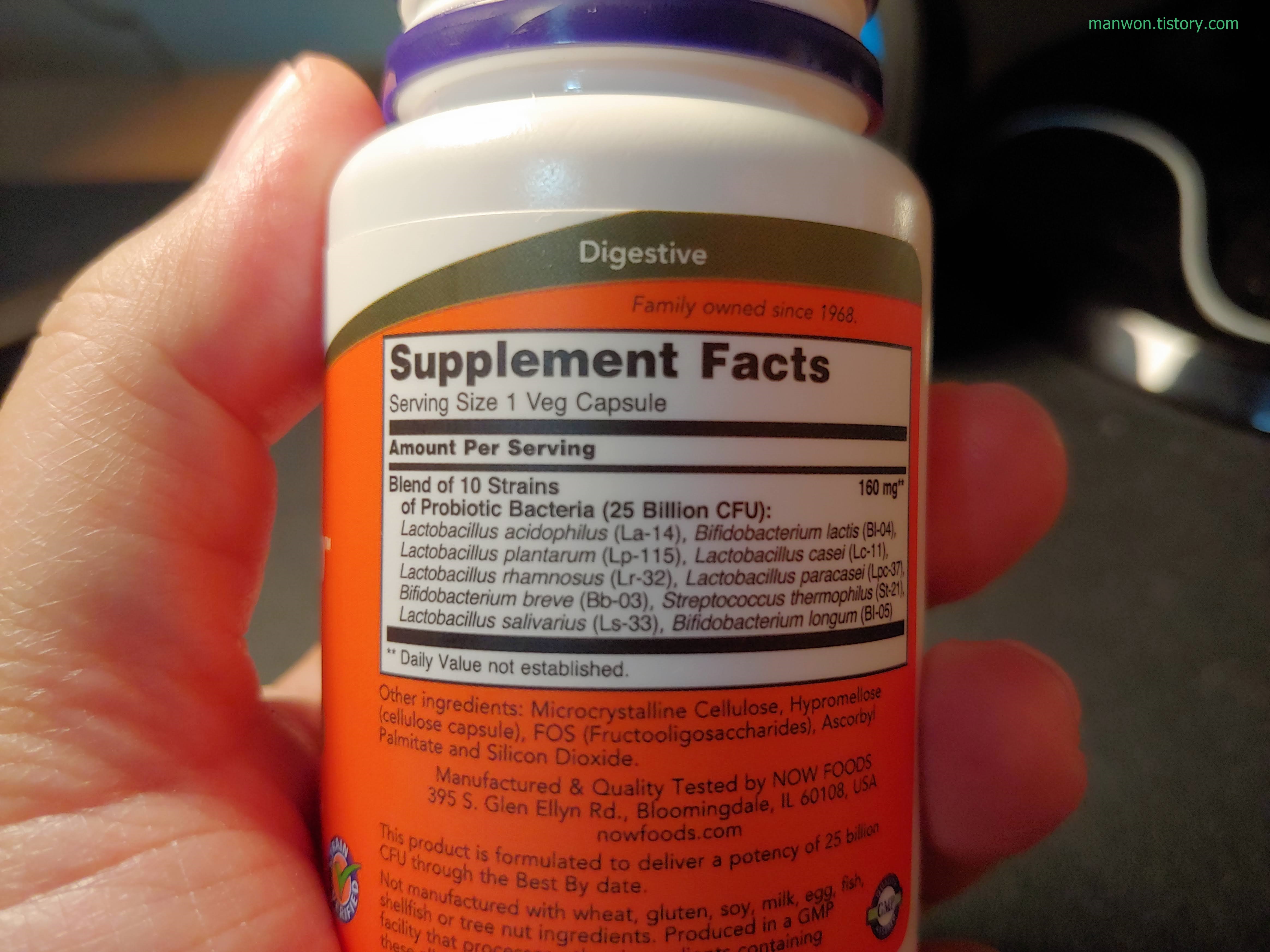 참고로 오한진 프리바이오틱스 FOS 트리플은 프로바이오틱도 12종 들어있고 그 프로바이오틱의 먹이가 되는 프리바이오틱도 들어있다. 거기에 추가로 아연도 들어있고 해서 사실 비싼 이유가 다 있는 셈이다. 반면에 이번에 구매한 나우푸드 프로바이오틱-10 유산균 250억은 내가 조사한 바로는 심플하게 유산균 10종이 들어있는 것 같다.