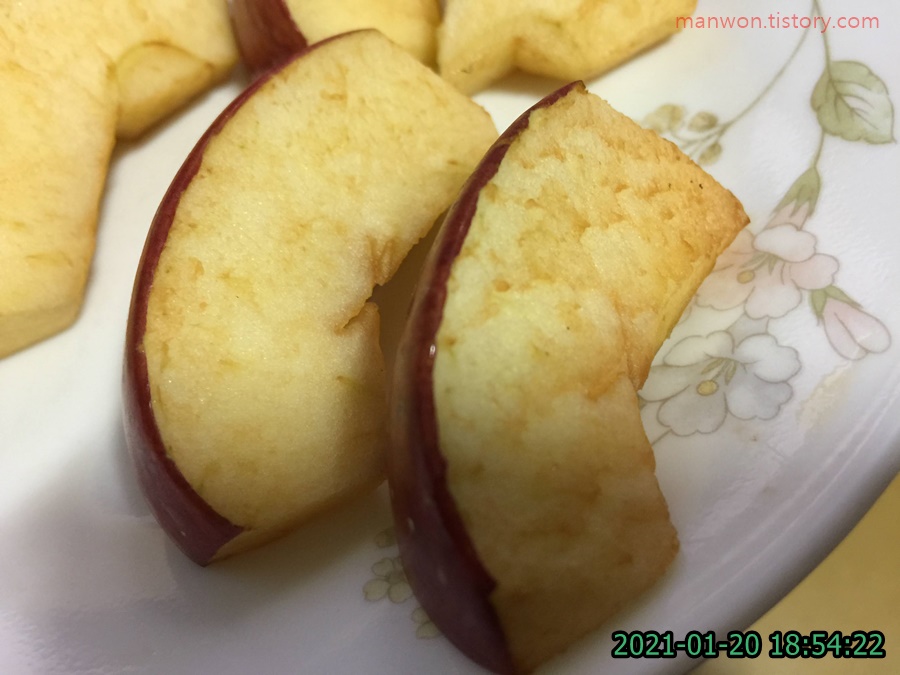 저녁 먹고 후식으로 갈변한 사과를 좀 먹었습니다.