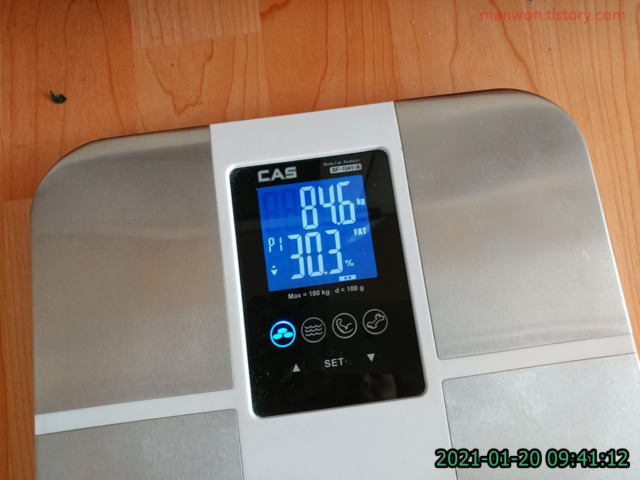 아주 오랜만에 체중을 쟀습니다. 84.6kg에 체지방율이 무려 30.3퍼센트네요.