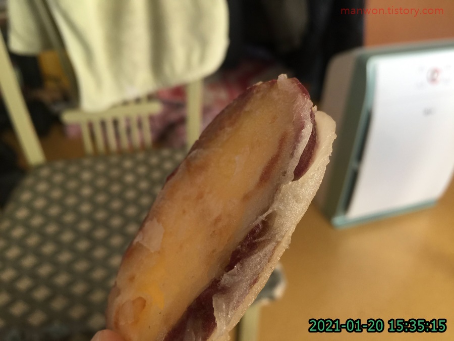 어머님이 오후에 간식으로 고구마를 후라이펜에 구워주셨는데, 저 껍질이 밀가루 아니냐고 여쭤보니 쌀가루를 입힌 거라고 하네요. 밀가루 입혔을 때랑 거의 차이가 없이 맛있더라고요. 나중에 그 쌀가루가 뭔지 좀 알아봐서 블로그에 다시 기록할 예정입니다.