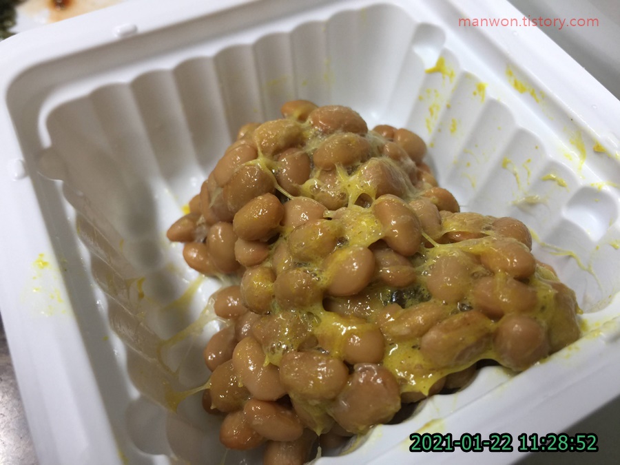 점심 먹기 전에 낫또를 먼저 먹었습니다. 이렇게 먹으면 식사량이 좀 줄어드는 효과도 있는 것 같아요.