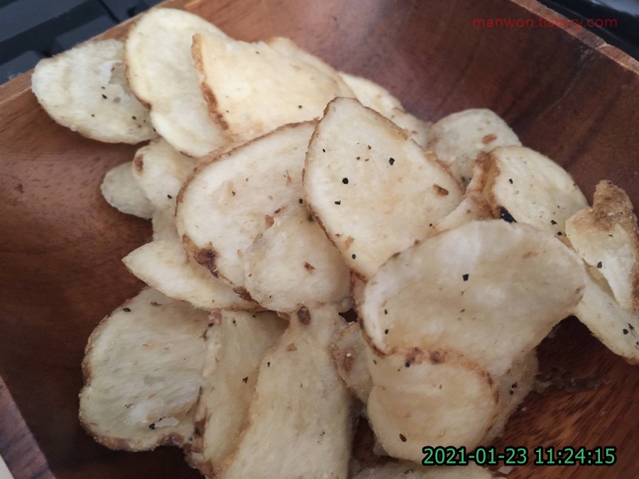 그리고 곧바로 무뚝뚝 감자칩을 먹었습니다. 밀가루 끊는 기간 동안 포테이토칩, 무뚝뚝 이런 제품들을 종종 애용하게 되네요.