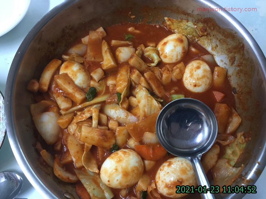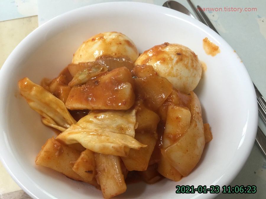점심 간식으로 떡볶이와 감자전을 조금 더 먹었습니다.