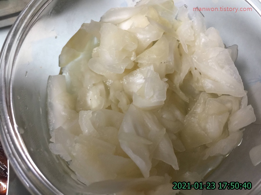 2021년 1월 23일 토요일. 밀가루 끊기 6일 차입니다. 오늘은 쌀떡볶이와 감자전, 바나나, 돼지고기 조림, 낫또와 견과류와 멸치 등을 먹었습니다. 어머님이 평소에 떡볶이를 만들 때는 밀가루 떡을 쓰시는데, 오늘은 특별히 쌀떡을 사용하셨습니다. 신경 써주신 어머님께 감사할 따름입니다..