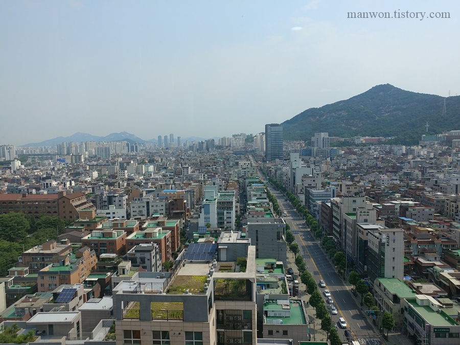 엘리베이터 타고 내려가기 전에 찍은 전경. 14층이라 그런지 전망이 꽤 멋지다.