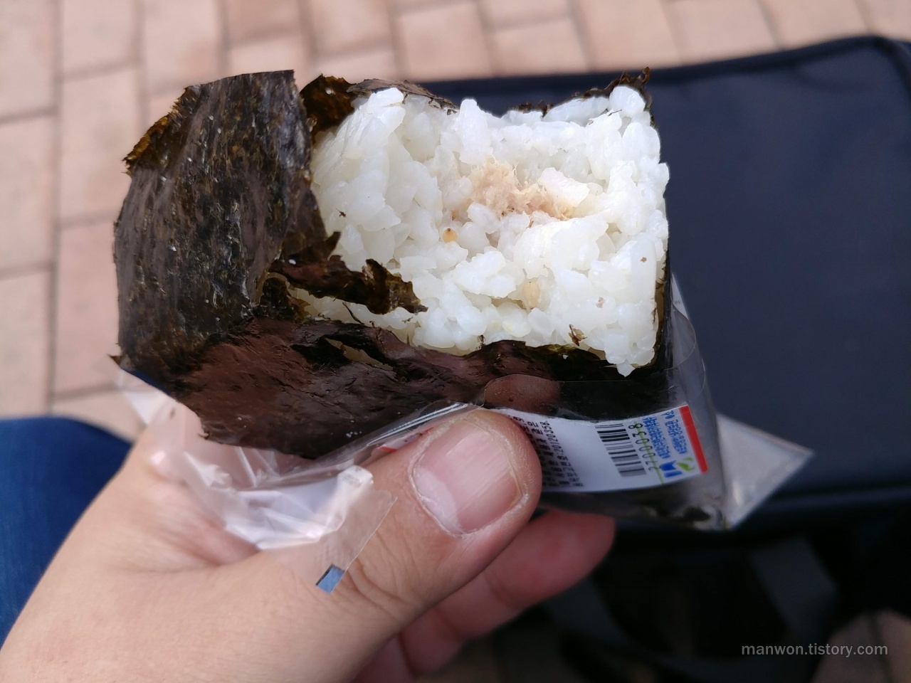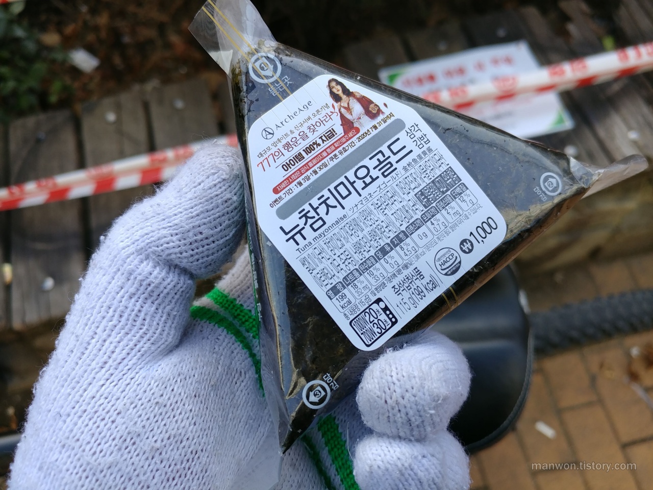 편의점에서 1,000원 짜리 삼각김밥을 하나 사서 먹었다.