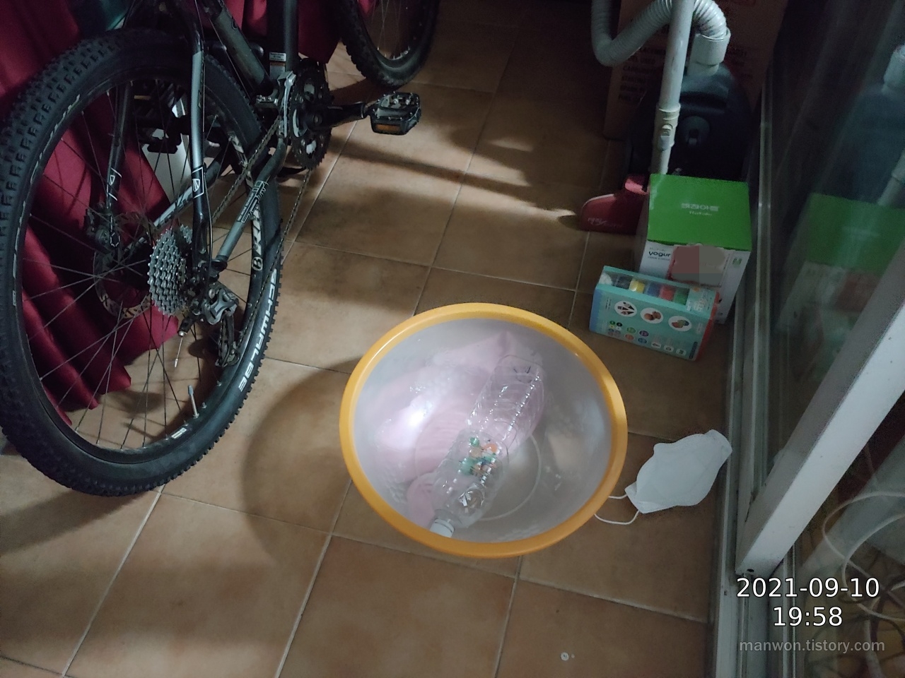 기마자세를 잡다가 갑자기 현타가 와서 대야와 페트병을 내 방 앞 베란다에 팽개치듯 던지고 나왔다.