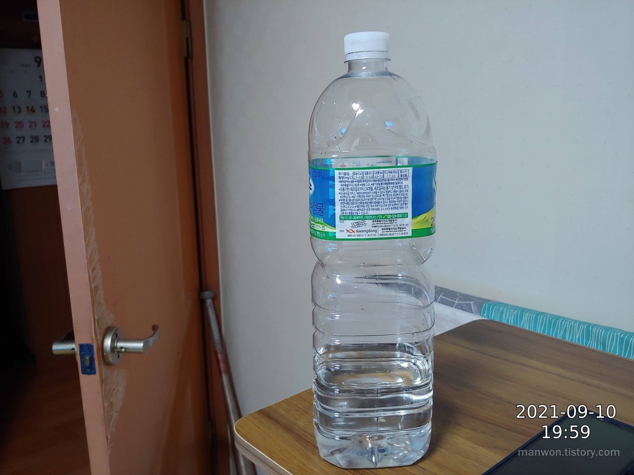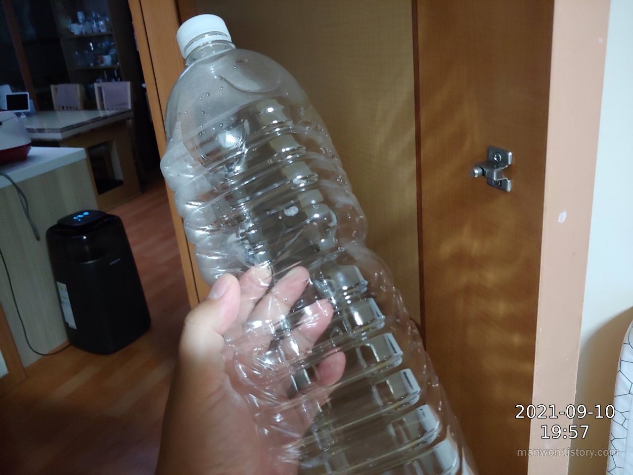 문을 잠그면 화장실을 갈 수 없기에 소변 받을 페트병도 미리 준비했다. 이때가 저녁 7시 57분경.