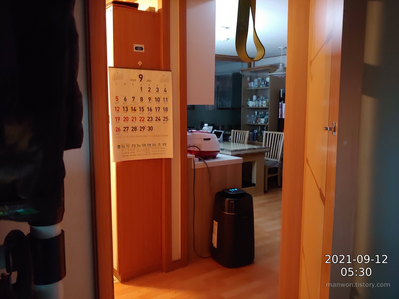 새벽 5시 23분. 어머님이 새벽 운동 나가시면서 자물쇠를 풀어주신다. 그걸 기다리는 중.