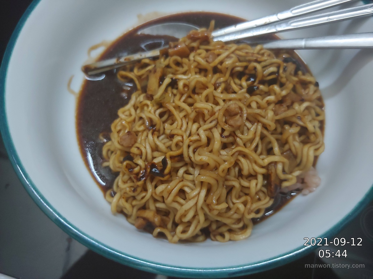 고생한 나를 위해서 평소에는 먹지 않던 걸 먹어주기로. 짜파게티 범벅!