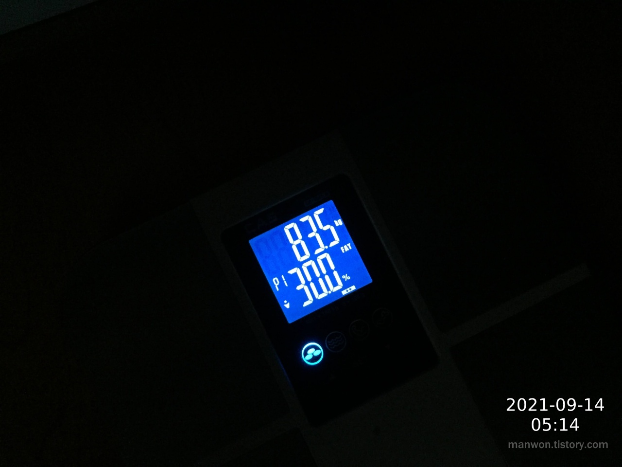 새벽 5시 14분. 체중 측정. 체지방 30.0% 실화냐...