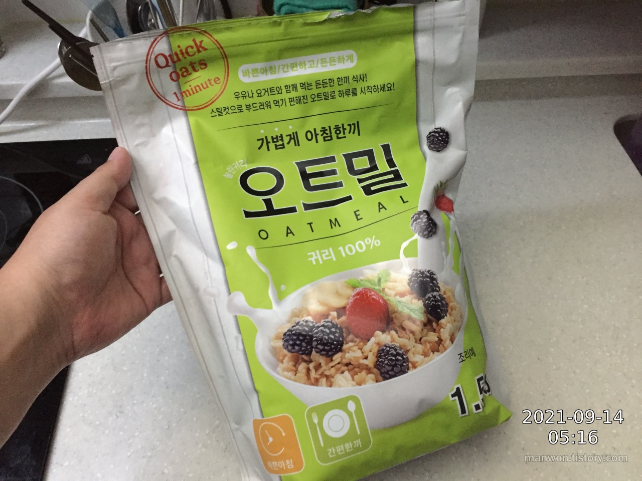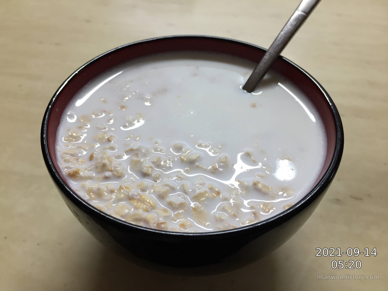 새벽 5시 16분. 탄수화물 섭취를 위한 오트밀.