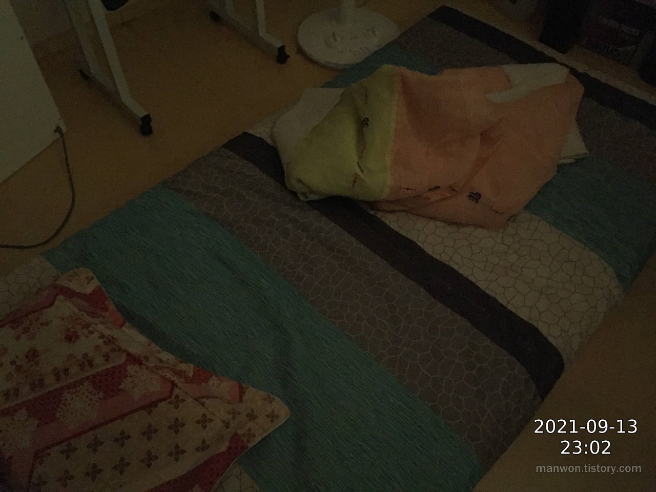 새벽 4시 40분. 또다시 잠에서 깸 (3). 자꾸 깨서 화딱지가 나서 이불 게고 기상함.