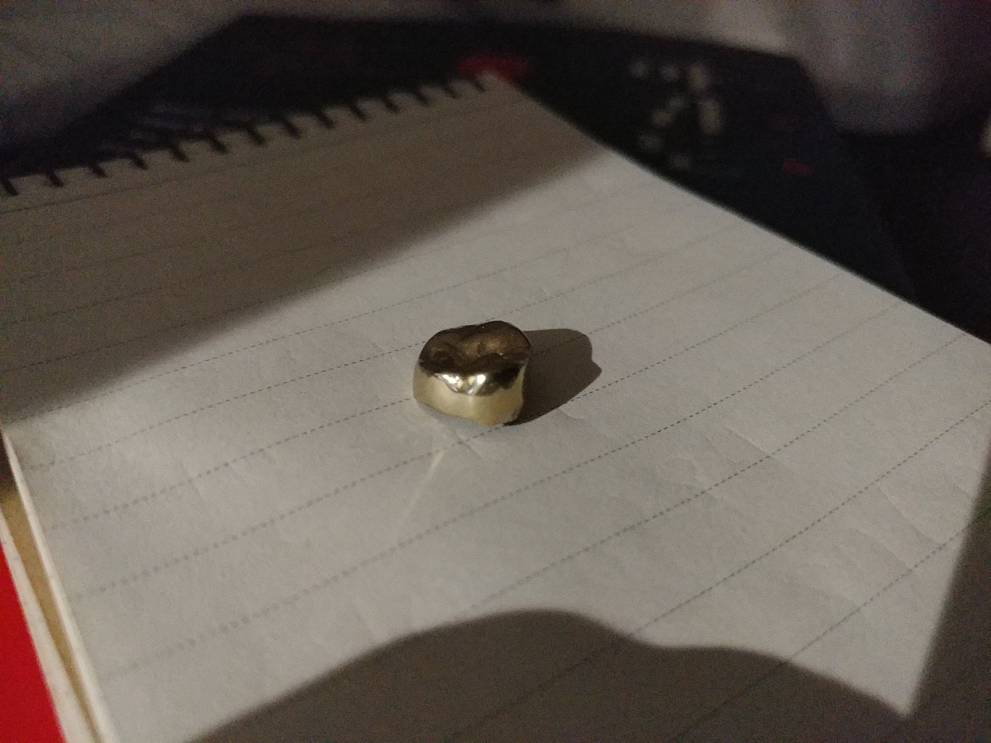 뭔가를 미루는 습관 때문에 이번에 제법 대형 사고를 쳤다. 지난번에 맨 안쪽 어금니를 발치했다는 일기[링크]를 남긴 적이 있었지. 위 사진이 그때 발치 과정에서 빼낸 금이빨이다. 못해도 10만 원은 훌쩍 넘게 받지 않을까 생각에 룰루랄라~ 참 즐거웠다. 그런데 이걸 그때 바로 팔았어야 했는데 그러지 않았다. 딴에는 '금 시세가 좋아지면 팔아야지' 하며 미뤘는데 중간에 금 시세는 알아보지도 않고 그냥 서랍 속 혈압약 플라스틱 빈 통에 넣어 보관하고 있었다. 그런데 얼마 전에 '이제 한번 팔아볼까?' 생각하며 서랍을 열었는데, '아... 그 통이 없어졌네...'