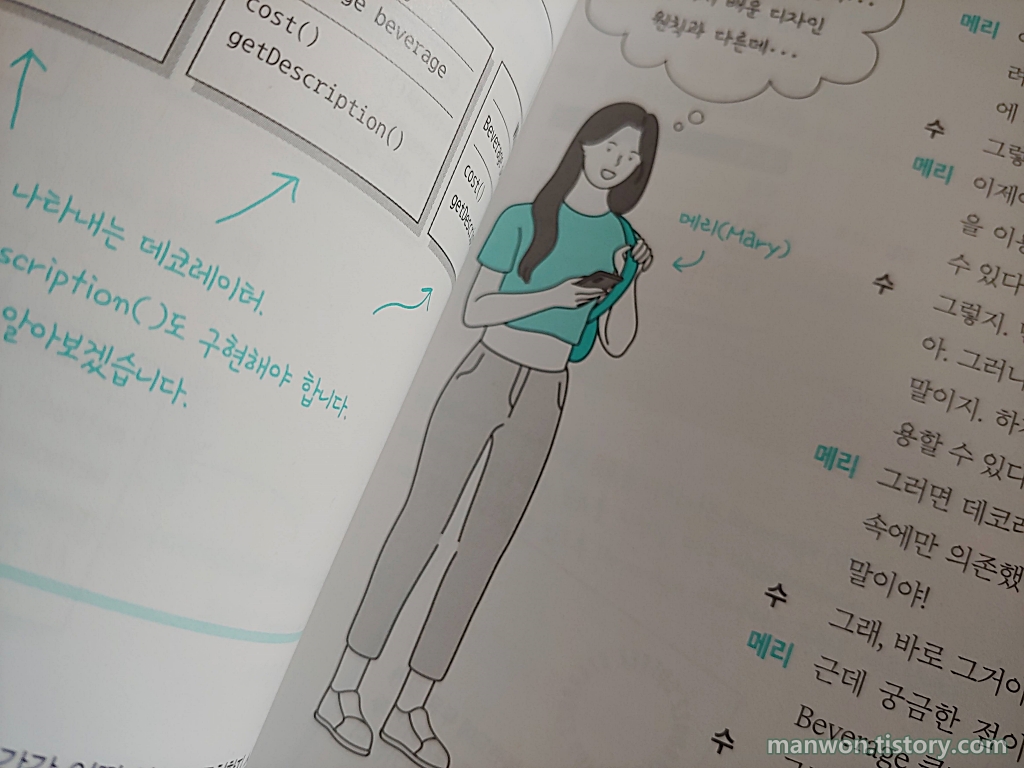헤드퍼스트 시리즈는 페이지에 굉장히 미국스러운 느낌의 그림이 많이 들어간다. 그런데 이 책을 보니 그림을 한국적인 스타일로 새로 그려 넣은 듯싶다.